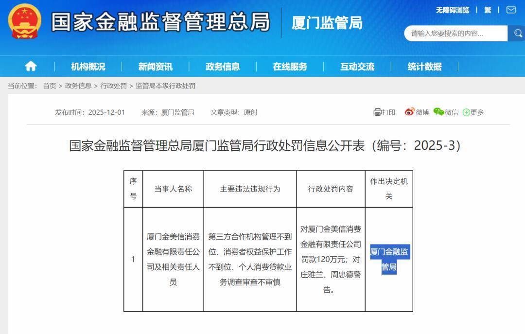 近日,因存在多方面违规问题天臣配资,厦门金融监管局对厦门金美信消费金融有限责任公司及相关责任人员作出处罚。